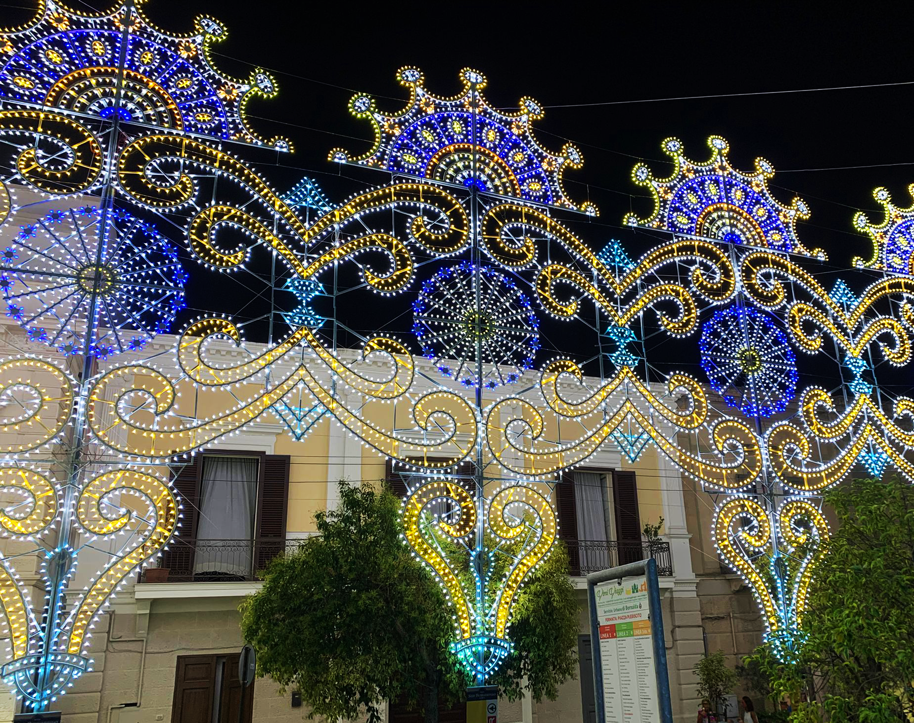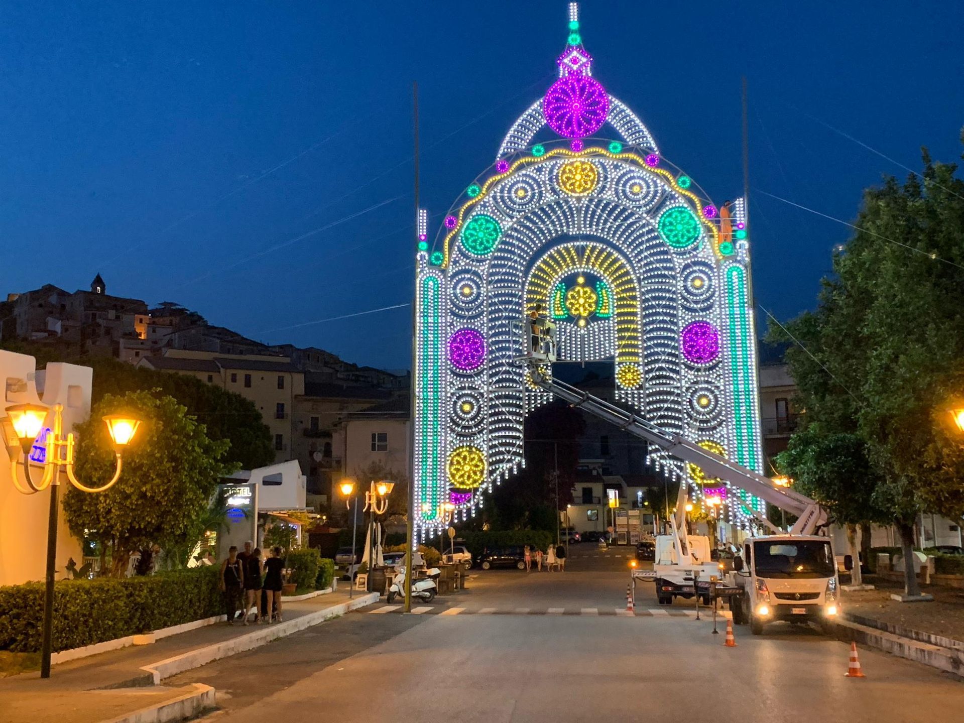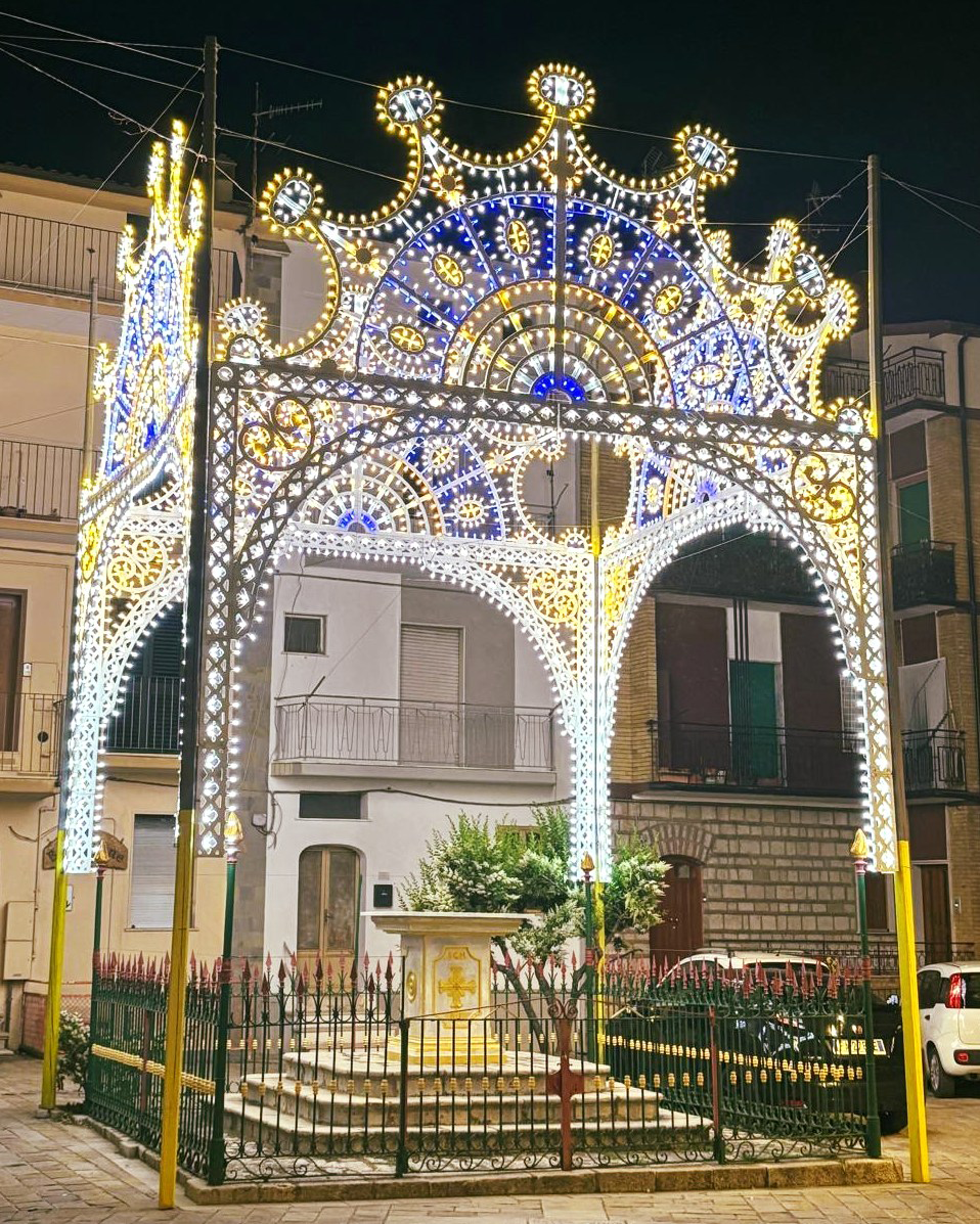 luminarie per feste patronali, curate nei dettagli e rispettose della tradizione locale. Archi, rosari luminosi, frontoni e motivi decorativi vengono installati da operatori specializzati, pronti a valorizzare la spiritualità e la solennità della celebrazione.